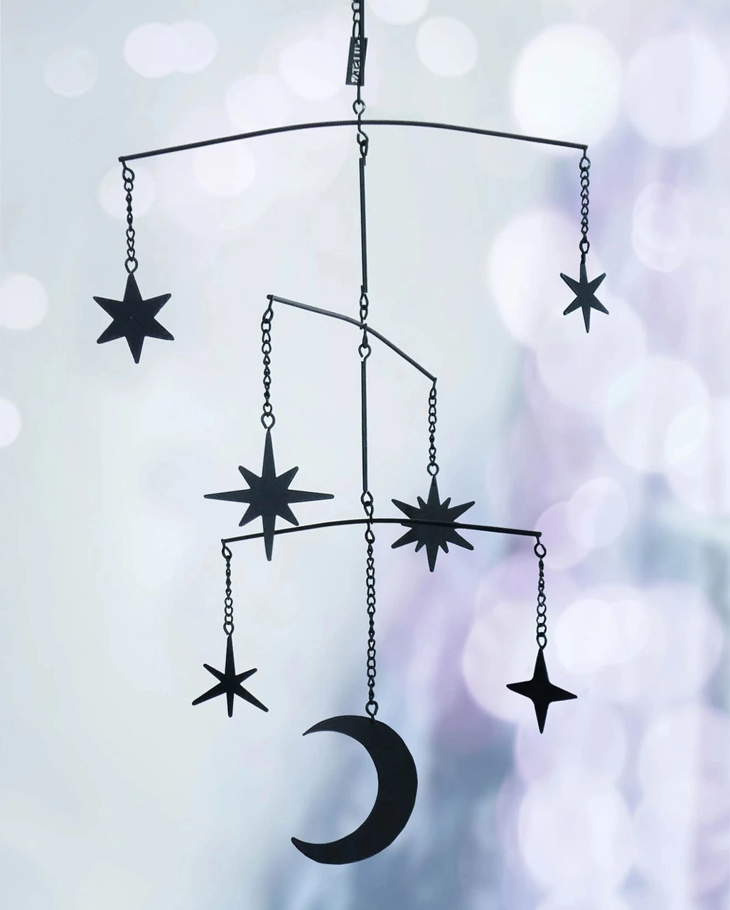 Mit dem Cosmic Mobile KILLSTAR bringst du einen mystischen Glanz in deine Gruft. Schwarz schimmern der Mond und die Sterne an deiner Decke. Das Universum in deinen vier Wänden hebt sich düster an von der Welt da draußen. Hier drinnen kannst du deine dunklen Leidenschaften ausleben. So zum Beispiel deine Leidenschaft zu mystisch anmutenden Deko Accessoires, die deiner Bude einen überirdischen Touch verleihen.