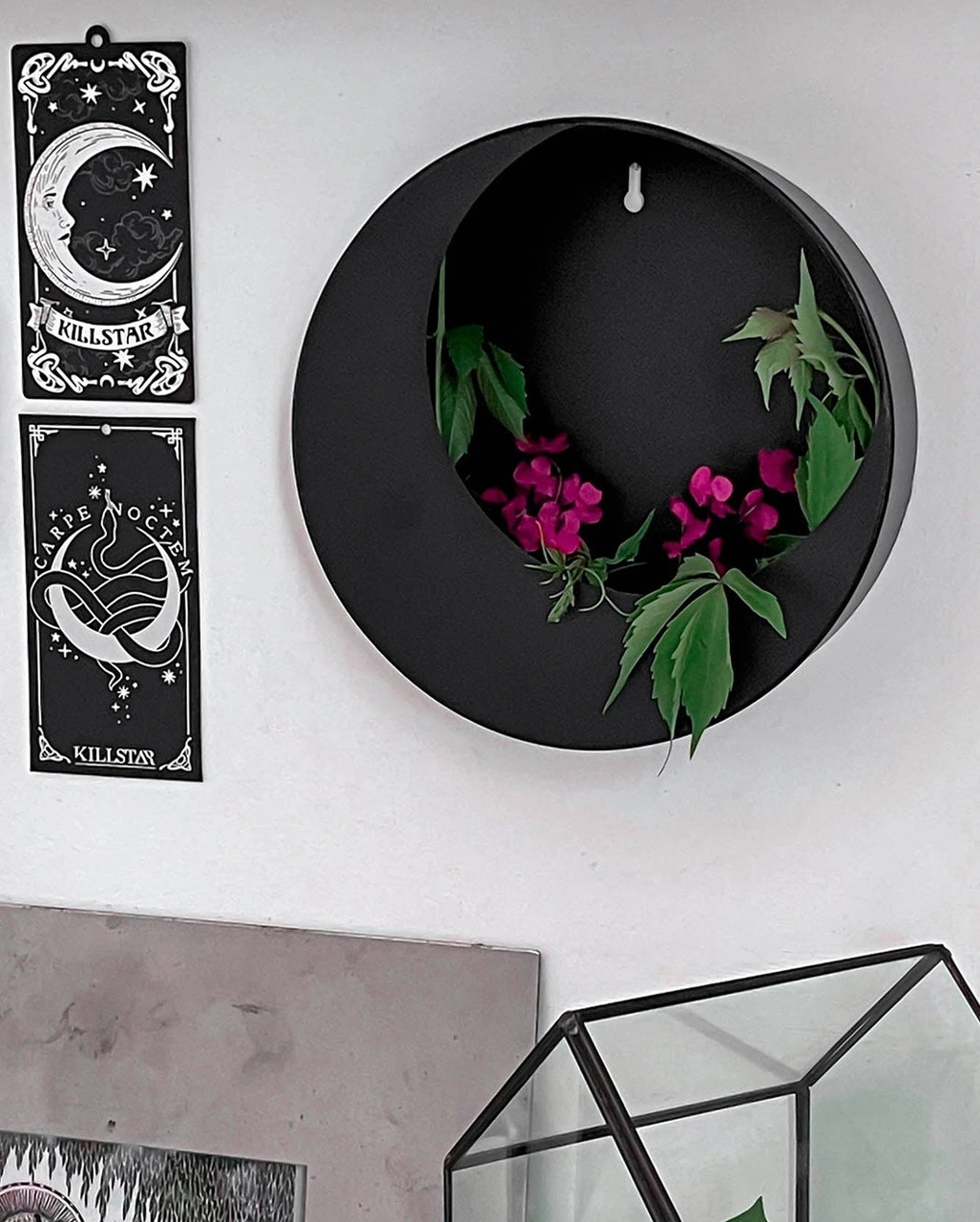 Unsere Cosmical Pflanzschale für die Wand KILLSTAR für die Wand ist die ideale Homeware für deine Gruft. Vor allem aber hast mit dieser originellen Gothic Vase einen perfekten Ort gefunden, um noch mehr von deinen Lieblingsblumen unterzubringen. Deine Fensterbank ist ja schon voll. Und du liebst deine neue außergewöhnliche Wanddeko, die einen mystischen Touch in deine Bude bringt. Als Kind des Mondes beschert sie dir einen magischen Anblick.