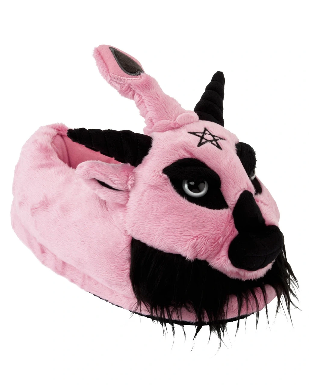 Flauschige knallrosa Hausschlappen mit Baphomet Motiv