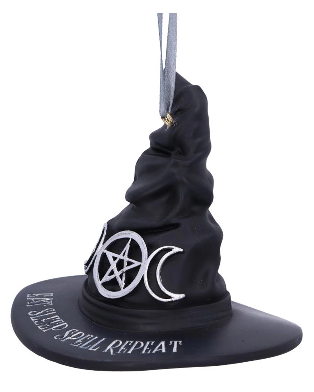 Mit dem Eat Sleep Spell Repeat Hängedeko Ornament bringst du Magie in deine Einrichtung. Als bezauberndes Deko Accessoire kannst du den magischen Hut als Hingucker an den Weihnachtsbaum hängen. Natürlich ist unser Hexenheut aber auch an Halloween oder in der Walpurgisnacht eine gute Gelegenheit, um deine okkulte Seite. Schließlich beweist du beim Dekorieren ein echt magisches Händchen.