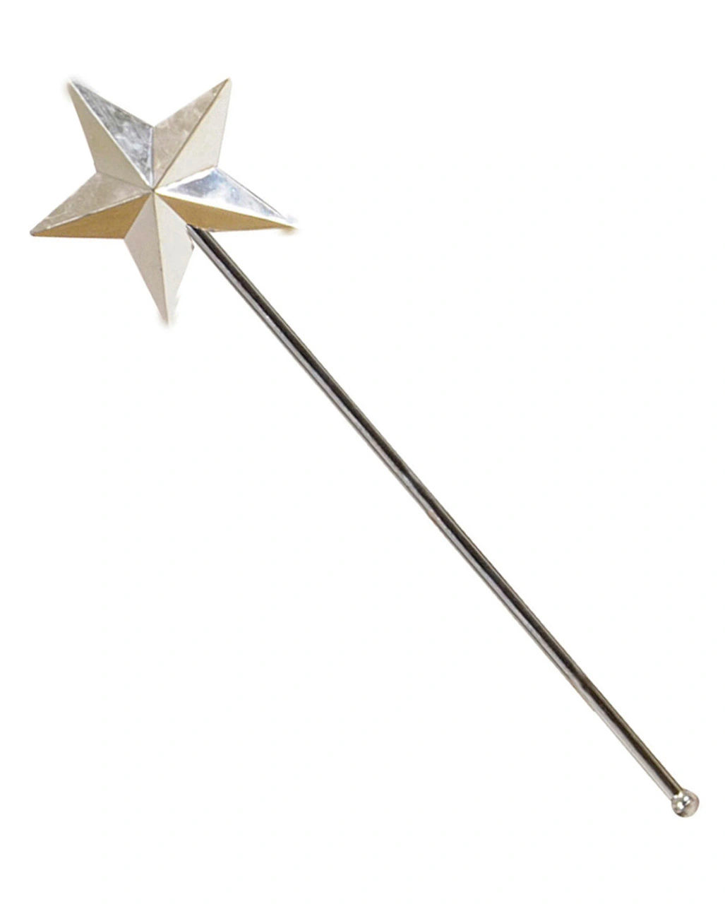 Das silberne Kostüm Accessoire ist etwa 43 lang und hat an der Spitze einen ca 10 cm großen fünfzackigen Stern. Mit dem Kostümzubehör aus Kunststoff verzauberst du alles.