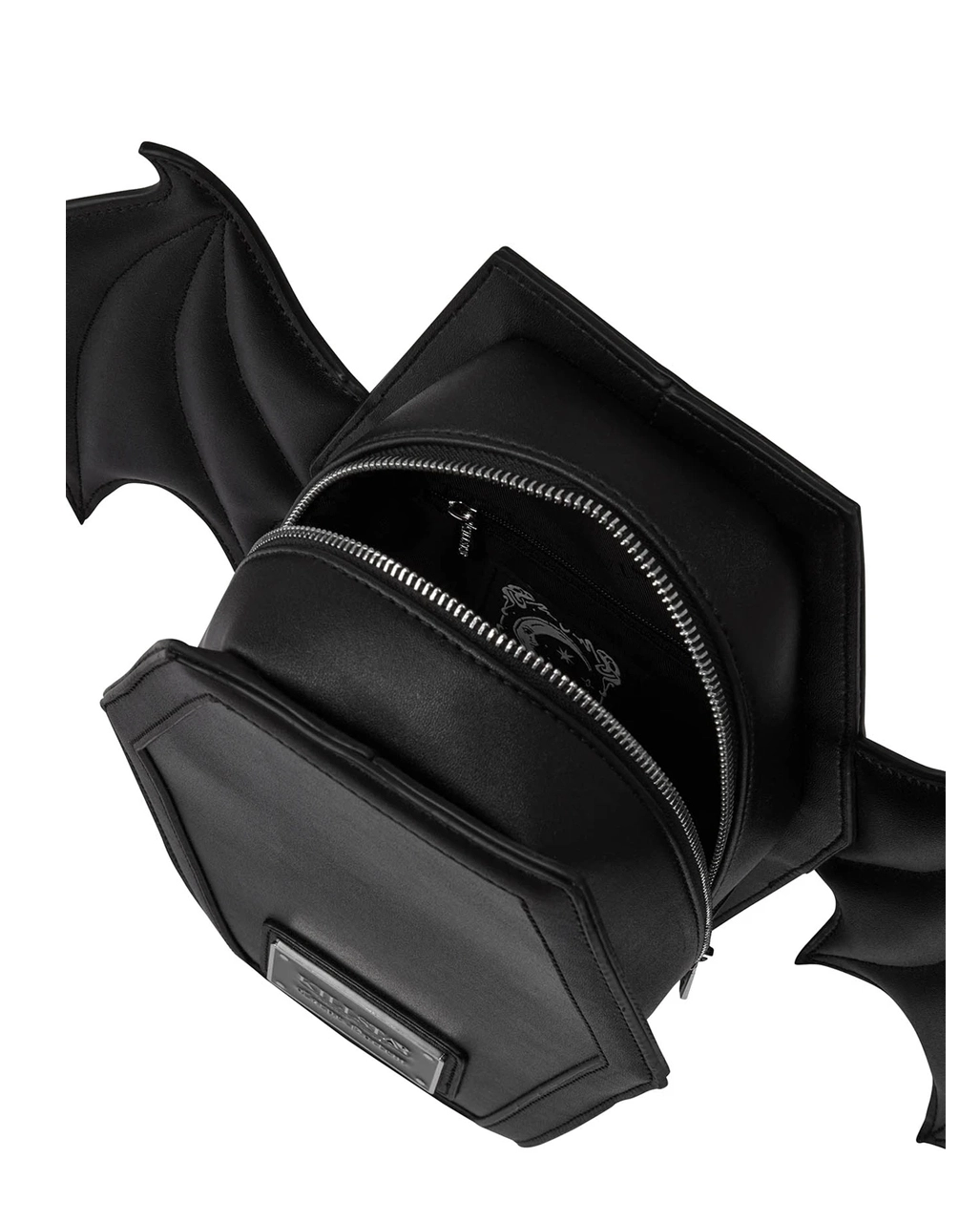 Der Fledermaus Sarg Rucksack KILLSTAR besitzt ein paar geniale Details, die den Backpack so besonders machen. De wären zum einen die auffallenden Fledermaus Flügel an den Seiten. Hinzu kommt, das dieses besondere Stück düsterer Gothic Fashion in einer Sargform designt wurde. Der Gothic Rucksack kann aber auch als praktische Umhängetasche verwendet werden – je nach Lust und Laune. Er besitzt einen Reißverschluss und ist komplett gefüttert.