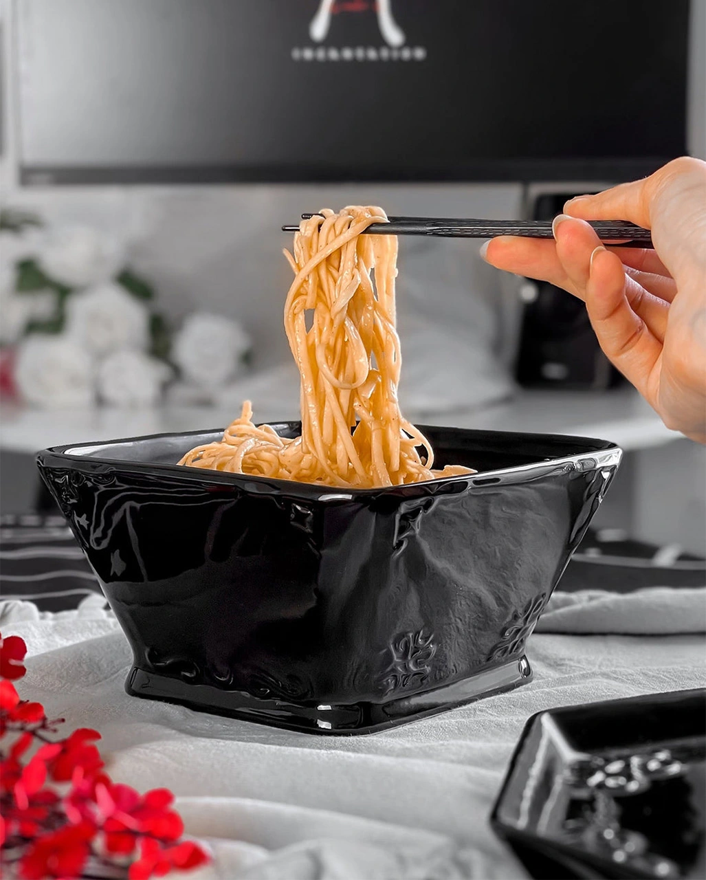 Die schwarze Keramikschüssel von KILLSTAR schreit geradezu nach einer Extraportion. Diese große Schüssel im eckigen Design ist eine wahre Augenfreude für Gothic Fans und Liebhabern edlen Geschirrs. Kein Wunder also, dass sie auf jedem Tisch zum Blickfang wird. Unsere Kitsu Schale von KILLSTAR stammt aus der gleichnamigen Serie. Mehr davon findest du ebenfalls in unserem Shop. Mit der schönen Kitsu Schüssel hast du nun deine neue Lieblingsschale für den riesen Hunger gefunden. Spaghetti oder Müsli finden hier ebenso ihren Platz wie Popcorn oder Halloween Süßigkeiten. Das schwarze Geschirr eignet sich auch perfekt als Geschenk.