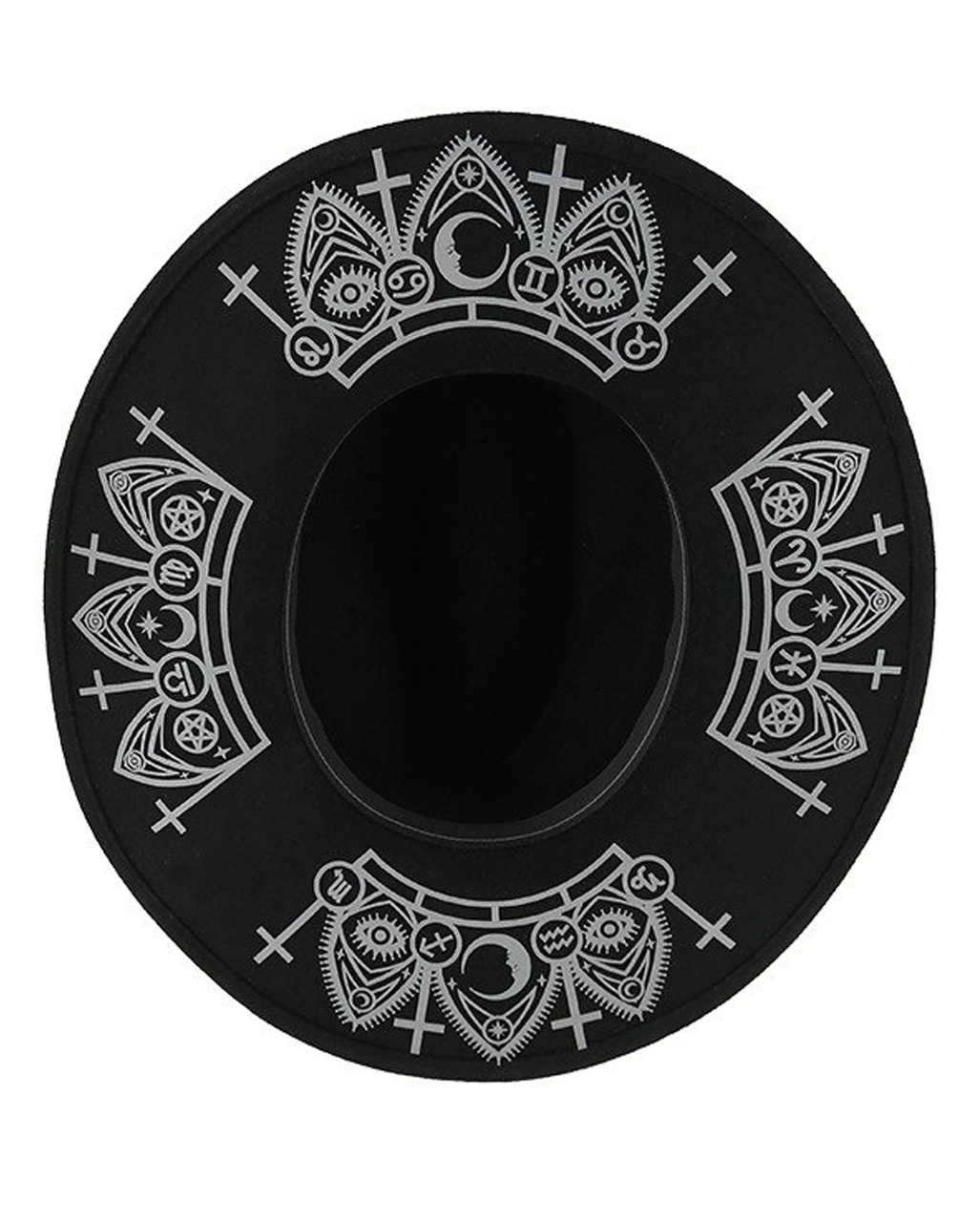 Ausgefallener Hexen Hut mit breiter Krempe & okkulten Symbolen