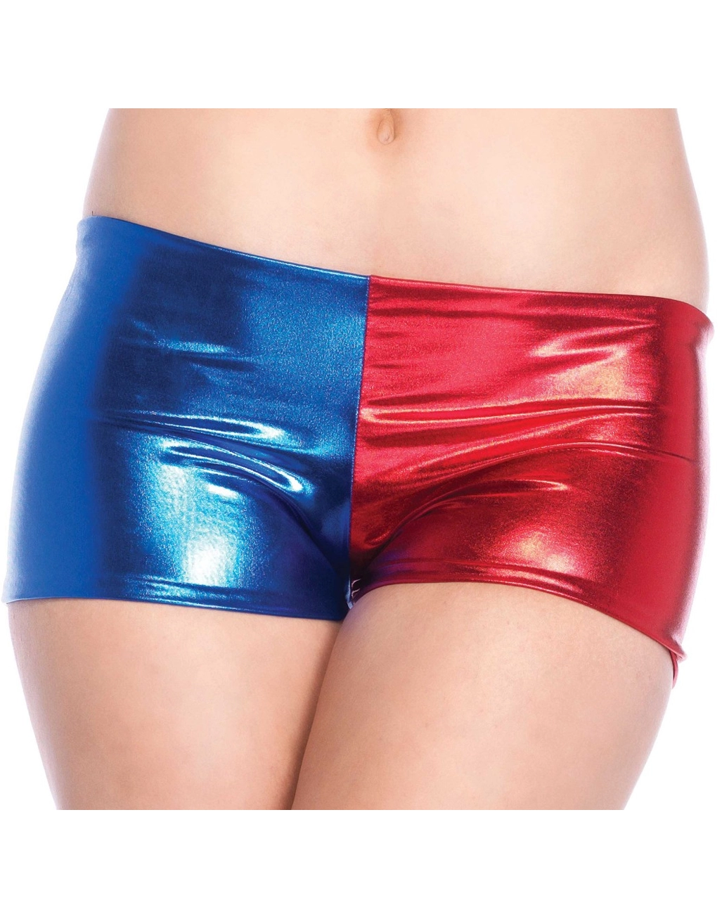 Die sexy Harlekin Hotpants für Damen ist ein cooles Harlekin Kostümzubehör für Kostüme im blau-rot Look. Die kurze Shorts zeigt nicht nur Bein, sondern ist durch das zweifarbige, glänzende Material auch ein eleganter Blickfang. Trage die blau-rote Harlekin Hotpants zu Karneval, Halloween und Motto Fete, und kombiniere sie z.B. mit einer ebenso zweifarbigen Kostümjacke.