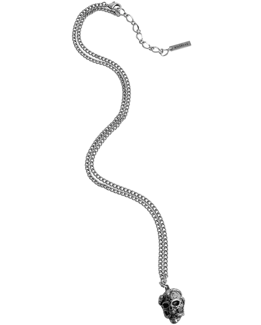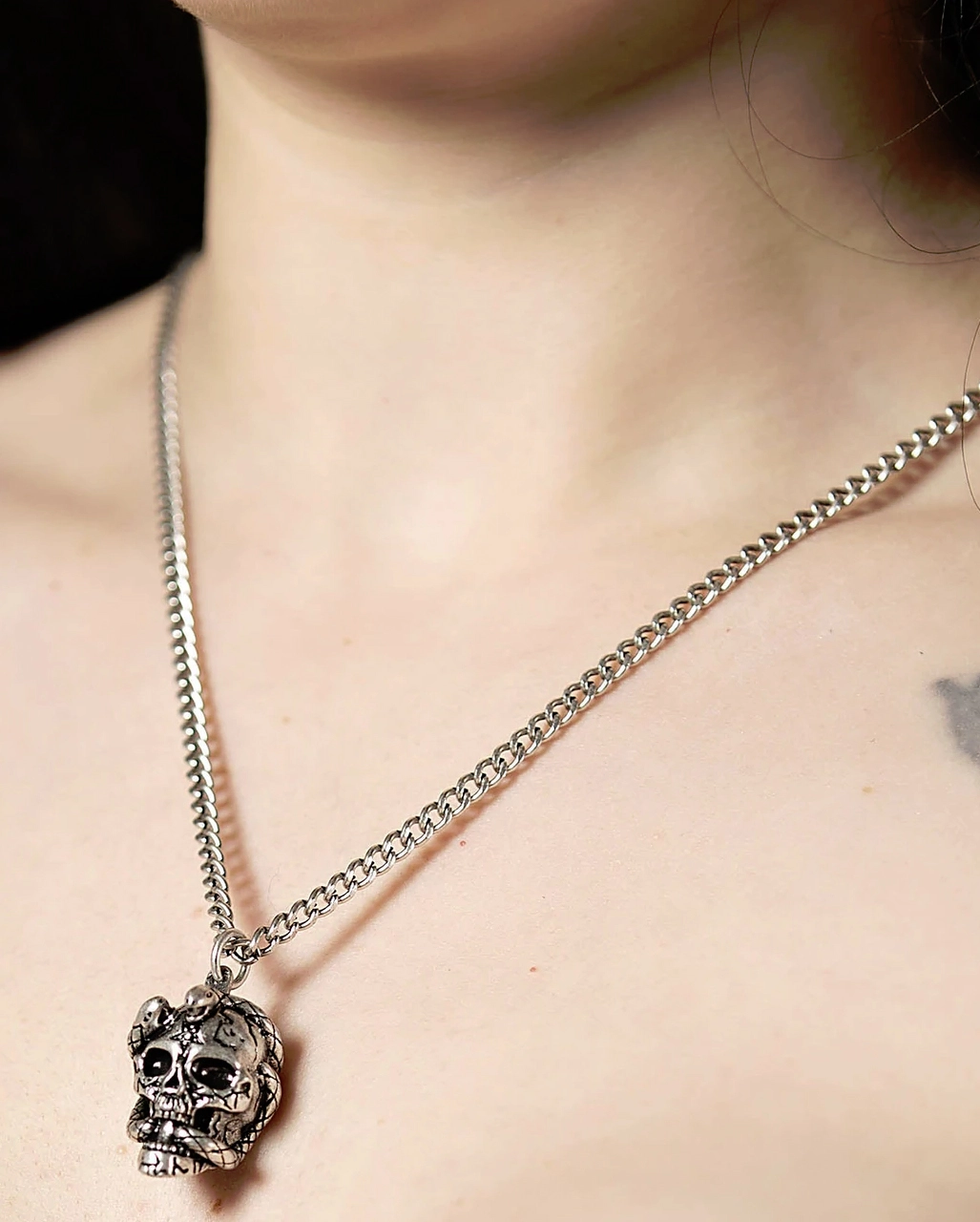 Silberne Kette mit Totenkopf- und Schlangenanhänger als Gothic Schmuck