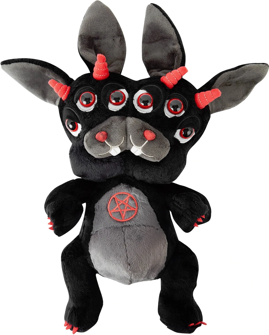 Die Kreeptures Plüschtiere sind einfach fantastisch. Ob als Gothic Geschenkartikel oder zum selbst behalten. Wenn du einen Hasen zum Liebhaben brauchst, dann leistet dir unser Twitch & Switch Kuscheltier KILLSTAR gerne Gesellschaft. Sie werden als die engsten Geschwister beschrieben, die sich ein wenig in die Quere gekommen sind. Sie sind 33 cm groß und aus weichem Plüsch mit detaillierten Hörnern, roten Akzenten, endlosen Augen und niedlichen Knopfnasen. Auf der Brust des weichen Monster Kuscheltiers prangt zudem ein rotes Pentagramm. Perfekt zum Verschenken – oder am besten für dich selbst!